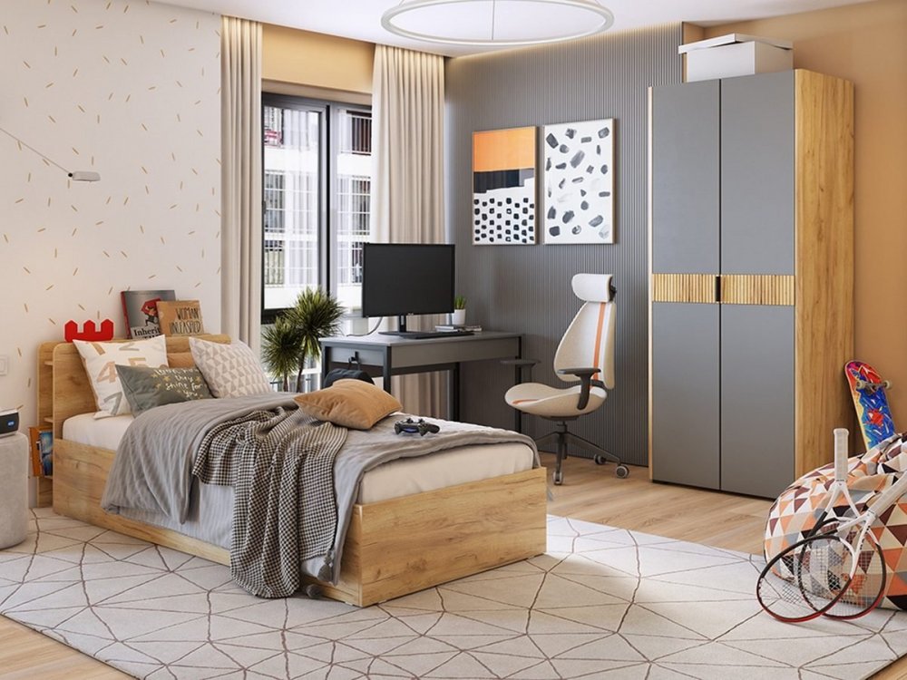 Корпус из ЛДСП 16 мм в цвете «дуб крафт золотой» создаёт тёплую, уютную базу.