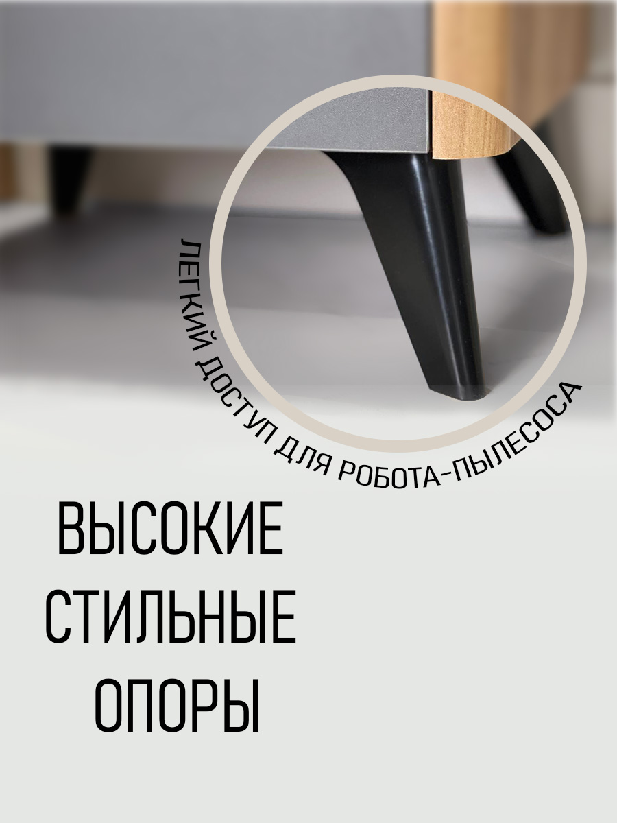 Высокие опоры (120 мм) позволяют роботу-пылесосу беспрепятственно проникать под тумбу, поддерживая чистоту в спальне.