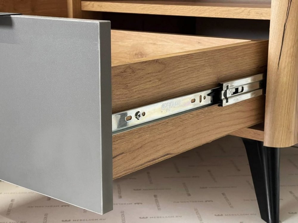 Фасад ящика и открытая ниша выполнены в цвете «графит серый» — глубокий тёмный оттенок, который красиво контрастирует с корпусом.